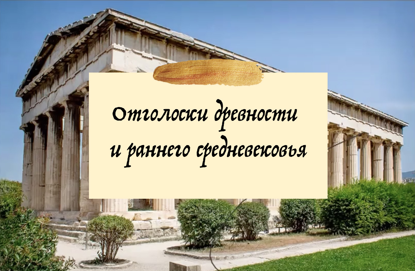 Древнеегипетский храм и «Житницы фараоновы», храм Тесея с Агоры в Афинах, Уличные фасады в Помпеях, Римские храмы и мавзолеи, Еврейская синагога, Церковь из Византийской Фессалоники, Армянские часовни и хачкары, Романский и готический стиль в Москве.